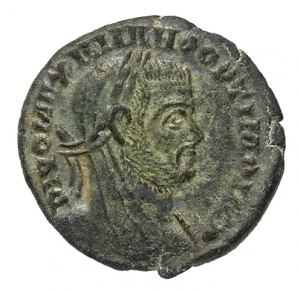 Vorderseite: DIVO MAXIMIANO OPTIMO IMP. Verschleierter Kopf (capite velato) des Maximianus mit Lorbeerkranz nach r.