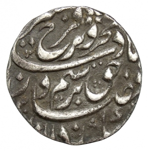 Vorderseite: Sikka zad az Fazl-i- [11]30 Haq bar sim wa za[r] Badsha[h] bahar wa bar Farrukhsiyar. Kaisername und -titel. 1130 A. H.