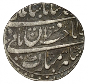 Rückseite: Zarb Farukhabad Sanah 27 Julus Maanus Maimanat. Münzstättenbezeichnung und Regierungsjahr 27.