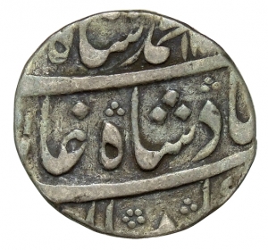 Vorderseite: Sikka Mubarak Badshah Ghazi Ahmad Shah Bahadur 11[??]. Kaisername und -titel. 11[??] A. H.