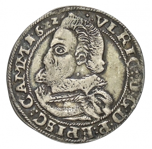 Vorderseite: VLRIC : D : G D : P : EPISC : CAMM : 16ZZ. Geharnischtes Brustbild des Herzogs Ulrich mit Spitzenkragen nach links.