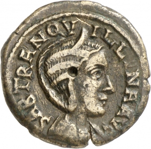 Vorderseite: SAB TRANQV-ILLINA AVG. Drapierte Büste der Tranquillina mit Stephane in der Brustansicht nach r.