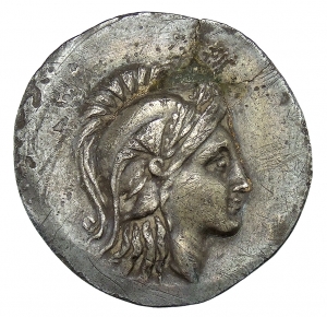 Vorderseite: Kopf der Athena mit attischem Helm nach r.