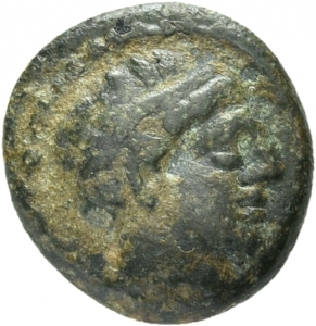 Vorderseite: Jugendlicher Kopf mit Diadem (Apollon?) nach r.