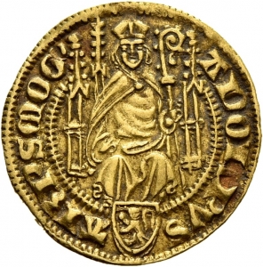 Literatur: G. Felke, Die Goldprägungen der rheinischen Kurfürsten 1346-1478 (1989) Nr. 215; E. Link, Die erzbischöfliche Münze und ihre Erzeugnisse, in: Bingen. Geschichte einer Stadt am Mittelrhein (1989) Nr. 16.