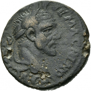 Vorderseite: [IMP C M OP SE]VE MACRINO-S AVG. Kopf des Macrinus mit Lorbeerkranz nach r.