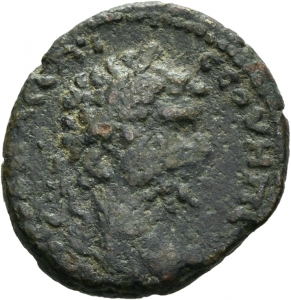 Vorderseite: [...] Λ CEΠΤΙ - CΕOVHP ΠΕΡ [rundes E]. Kopf des Septimius Severus mit Lorbeerkranz nach r.