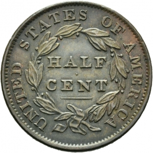 Vorderseite: UNITED STATES OF AMERICA. Zwischen unten gebundenen Kranz die Wertangabe HALF / CENT.