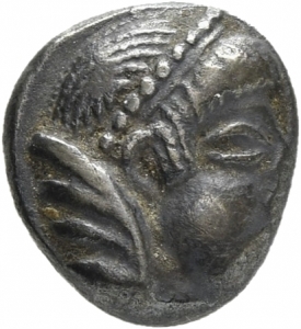 Literatur: R. T. Williams, The Archaic Coinage of Arcadian Heraea, ANS Museum Notes 16, 1970, 7 Nr. 15 a Taf. 1 (dieses Stück, Periode V, ca. 470 v. Chr.).