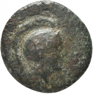 Vorderseite: Kopf der Athena mit attischem Helm nach r. Der Helm ist mit einem Helmbusch geschmückt.