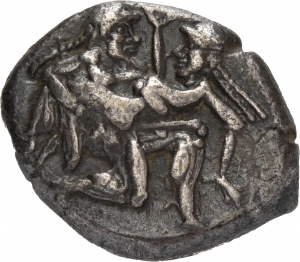Literatur: Beschreibung (1889) 96 Nr. 39 (dieses Stück, Lete zugeordnet); O. Hoover, The Handbook of Greek coinage series VI (2010) 78 Nr. 331 (datiert ca. 525-463 v. Chr.); BMC Thrace 216-217 Nr. 1-17 (datiert vor 500-465 v. Chr.).
