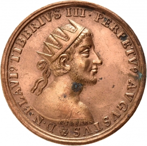 Literatur: C. Wohlfahrt, Christian Wermuth ein deutscher Medailleur der Barockzeit - a German medallist of the Baroque age (1992) 39; L. Bürchner, Die römischen und deutschen Kaiser von 44 vor Chr. bis 1711 nach Chr. in Abbildungen mit Wahlsprüchen von Christian Wermuth (1886) 23 Nr. 119; L. Calian - A. Alföldy Gazdac, Die Kaiser-Suite Medaillen von Christian Wermuth im Münzkabinett des Siebenbürgischen Nationalmuseums - Klausenburg (2014) 210 Nr. 152.