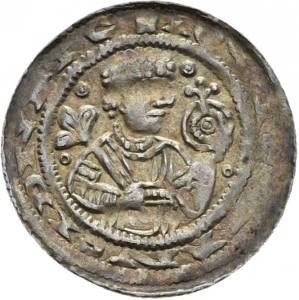 Vorderseite: + IOVICIARNCIDNEIC. Hüftbild eines barhäuptigen Weltlichen nach rechts. Ein Lilienzepter geschultert und in der linken Hand einen Reichsapfel haltend.