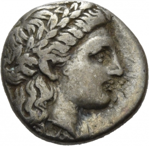 Vorderseite: Kopf des Apollon mit Lorbeerkranz nach r.