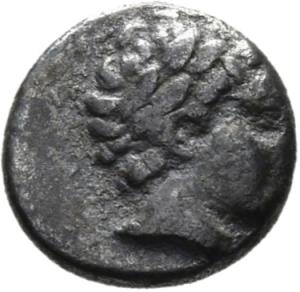 Vorderseite: Kopf des Apollon mit Lorbeerkranz nach r.