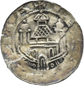 Literatur: H. Dannenberg, Die deutschen Münzen der sächsischen und fränkischen Kaiserzeit (1876-1905) Nr. 1600 (dieses Stück, dort mit Vorbehalt der Münzstätte Nordheim zugeordnet); W. Hävernick, Die Münzen von Köln I (1935) Nr. 383 (unbestimmte hessische Münzstätte).