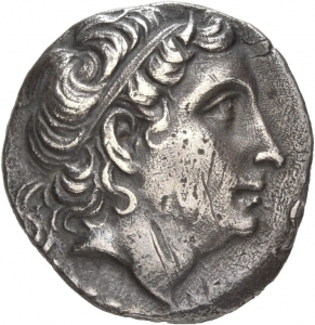 Obverse: Kopf des Demetrios Poliorketes mit Diadem und Stierhorn nach r.