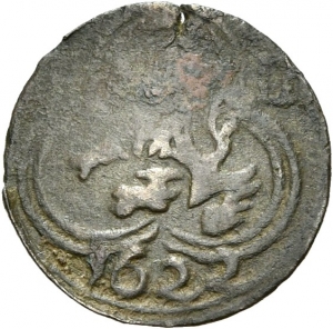 Vorderseite: In Dreipass ein aufrechter Löwe nach links (Stadtwappen von Braunschweig). Darunter Jahreszahl 1622.