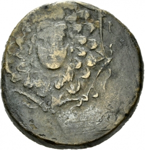 Vorderseite: Aegis mit Gorgoneion. Frontales Haupt der Medusa umgeben von konzentrischen Schuppen.