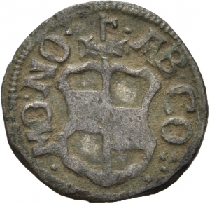 Obverse: MO NO - AB CO. Ein gevierter Wappenschild (Corvey, leeres Feld). Über dem Schild das Münzmeisterzeichen Zainhaken (Wolff Albrecht Knorre).