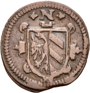 Vorderseite: Das Kleine Nürnberger Stadtwappen in Kartusche, darüber N zwischen zwei Kreuzen.