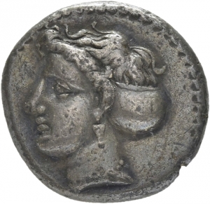 Obverse: Kopf der Nymphe Sinope mit Haarband (sphendone) nach l.