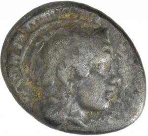 Obverse: Kopf der Athena mit attischem Helm nach r. Lorbeerkranz auf dem Helmkessel.