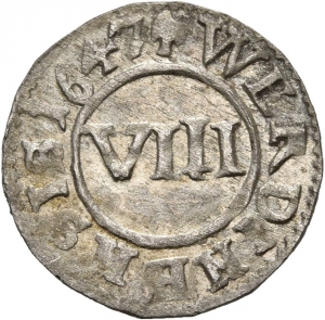 Vorderseite: WERDINENSIS 1647. Die Wertzahl VIII. Am Ende der Umschrift ein Kleeblatt.