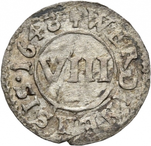 Vorderseite: WERDINENSIS 1648. Die Wertzahl VIII. Am Ende der Umschrift ein Kleeblatt.