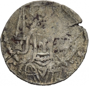 Vorderseite: [...]. Thronender König von vorne, auf der Brust den Adler. In der Rechten ein Schwert, in der Linken einen Zweig.