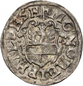 Vorderseite: MO NO REIP HILDESH. Der verzierte Hildesheimer Wappenschild. Darüber das Münzmeisterzeichen Zainhaken (Matthias Weber).