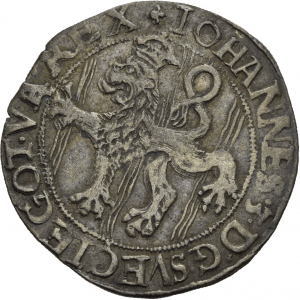 Vorderseite: IOHANNES 3 D G SVECIE GOT VA REX. Bekrönter Löwe nach links (Folkunger-Löwe).