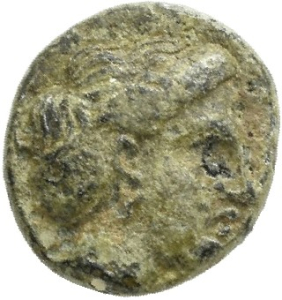Vorderseite: Kopf der Aphrodite mit Ohrring und Haarband (sphendone) nach r.