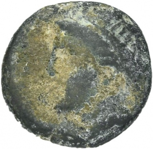 Rückseite: KNI. Schiffsvorderteil (prora) nach l. Darunter eine Keule und der Magistratsname [Χ]ΟΡΟΝΙΚ[ΟΣ].