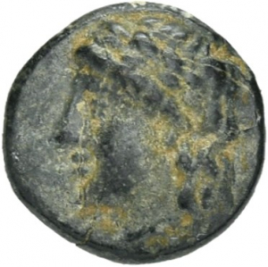 Vorderseite: Kopf des Apollon mit Lorbeerkranz nach l.