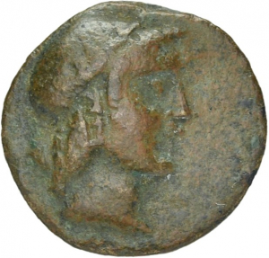 Vorderseite: Kopf des Apollon mit Lorbeerkranz nach r.