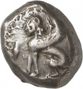 Literatur: N. M. M. Hardwick, The Coinage of Chios from the Sixth to the Fourth Century B. C. (1991) 234 Nr. A45,10 (Stater, ca. 490-480 v. Chr., dieses Stück); O. Hoover, The Handbook of Greek Coinage Series VI (2010) 257 Nr. 1119 (Stater oder Didrachme, ca. 490-480 v. Chr.).
