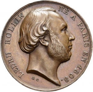 Vorderseite: LEDRU ROLLIN - NÉ A PARIS EN 1808. Kopf des Alexandre Ledru-Rollin nach rechts. Unten die Signatur B C.