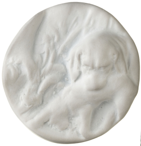 Lina Wiedwalds Porzellanmedaille stellt die Frage: Wer hat das (Jagd-)Recht auf seiner Seite, der Jagdhund, der Jäger als sein Besitzer, der Jagdpächter? Wie, wann oder wo hätte der Hase im Hundemaul sein Recht zu leben weiterhin ausüben dürfen? Die Rückseite zeigt den Wald unberührt von Hund, Hase und Mensch. Wird die Jagd als Paradigma für Eingriffe des Menschen in die Natur thematisiert? Das Verhältnis von Recht und Natur, einzelne Rechte der Natur und das Recht des Stärkeren werden hier angesprochen.