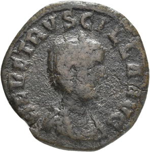 Vorderseite: HER ETRVSCILLA AVG. Drapierte Büste der Herennia Etruscilla mit Diadem in der Brustansicht nach r.